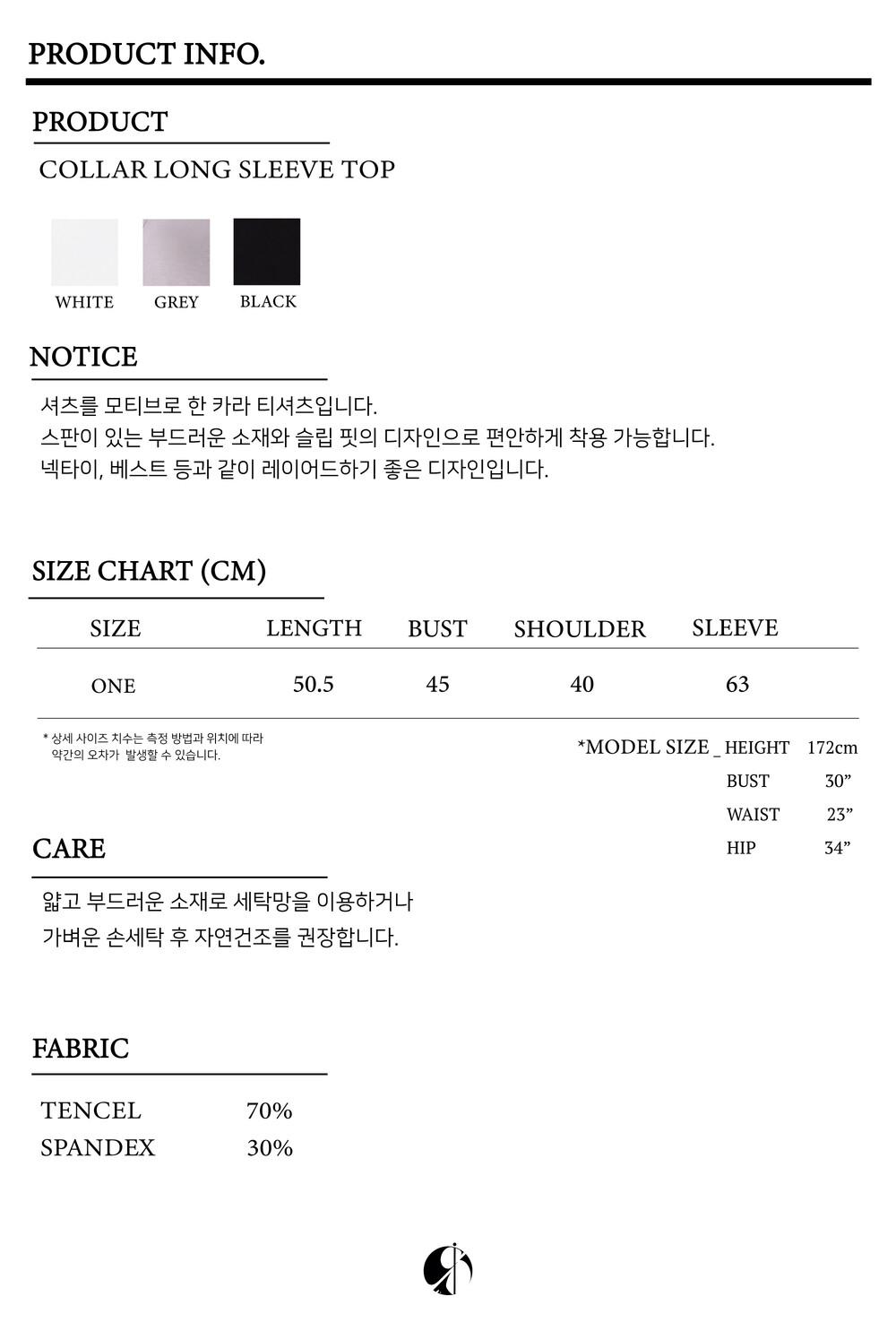 COLLAR LONG SLEEVE TOP [BLACK]