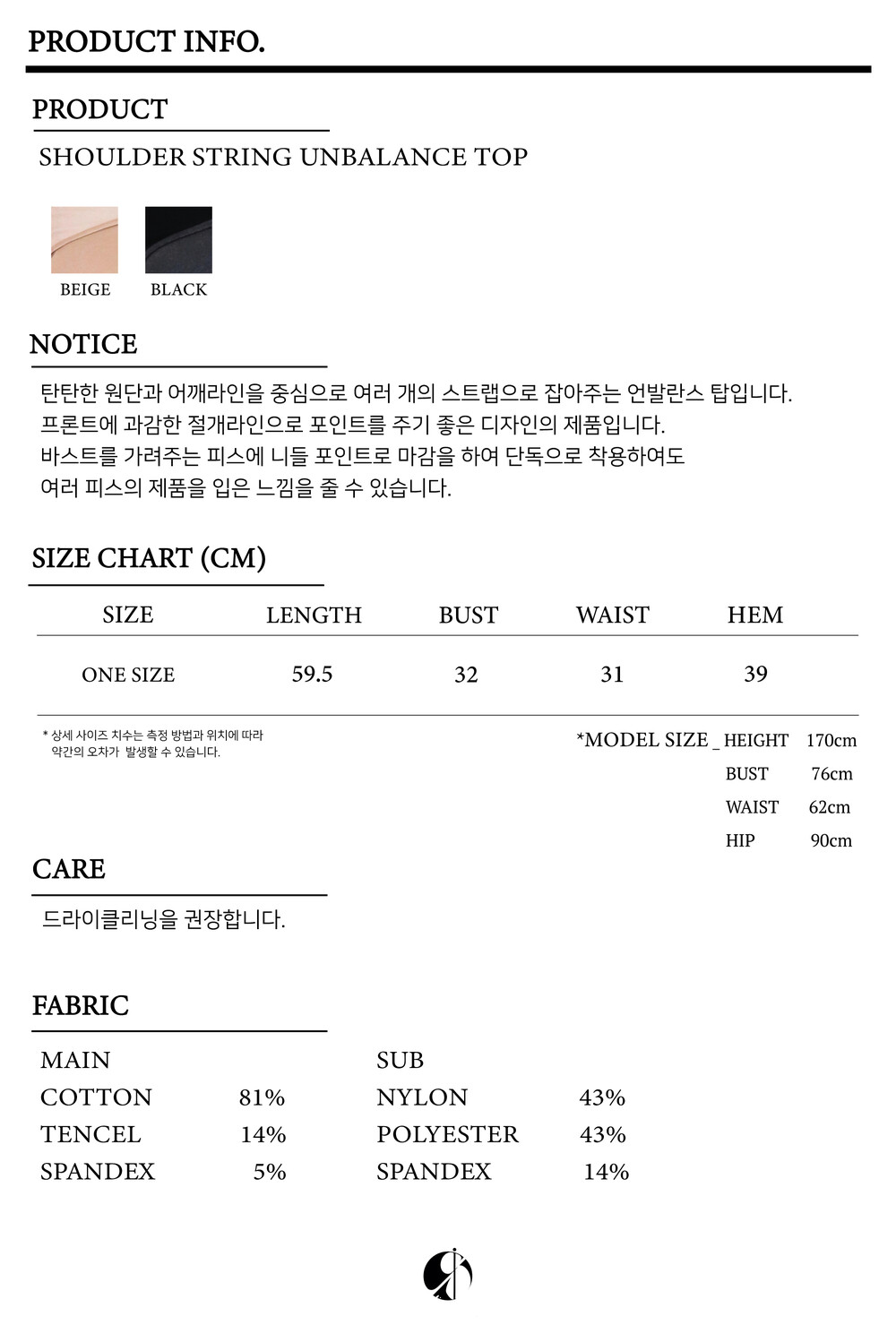 SHOULDER STRING UNBALANCE TOP [BEIGE]