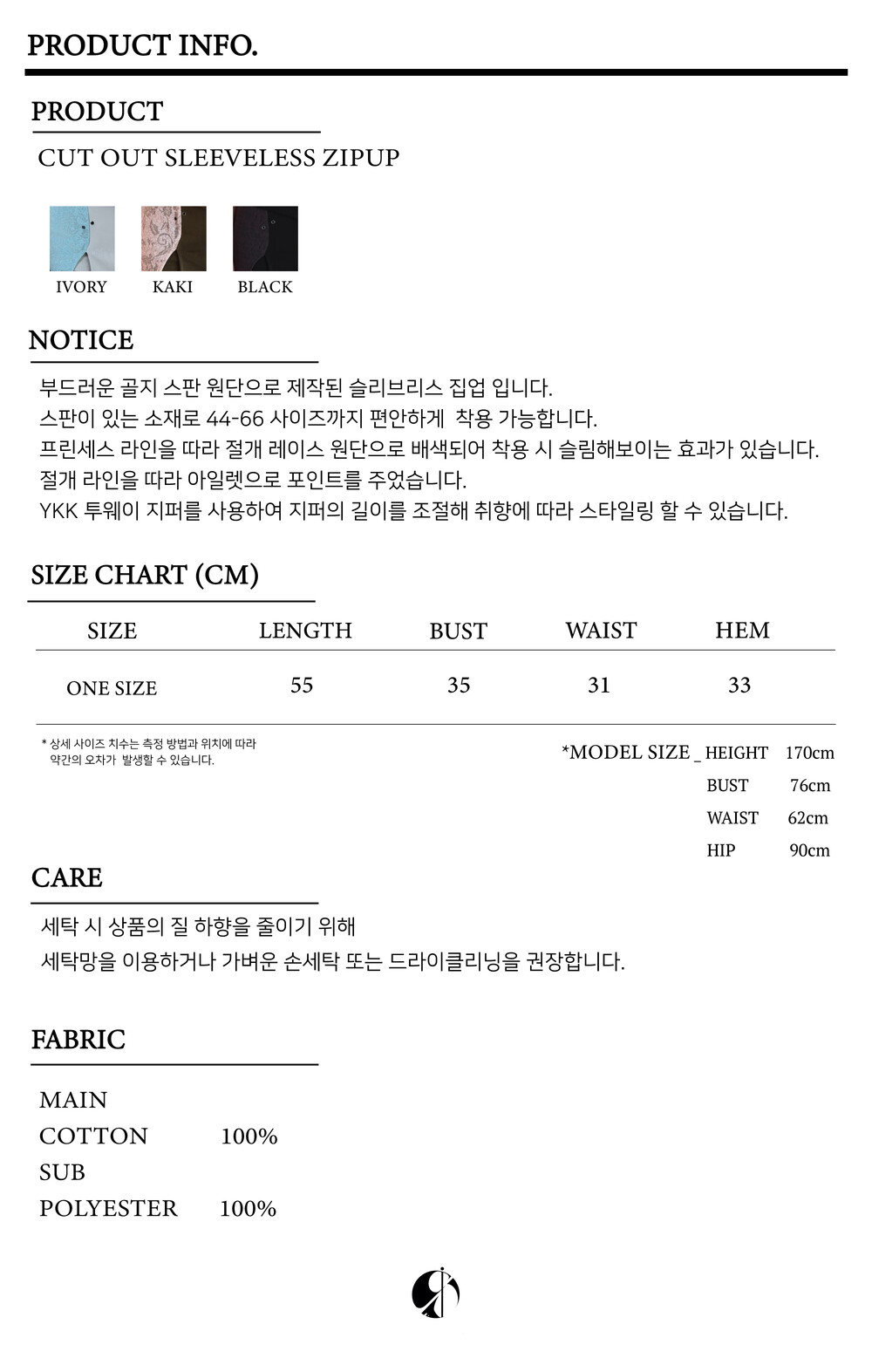 CUT OUT SLEEVELESS ZIPUP [IVORY]